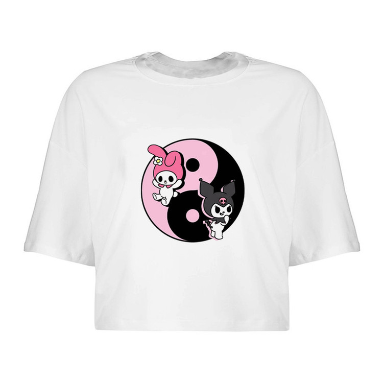 کراپ تی‌شرت آستین کوتاه زنانه مدل ملودی و کرومی کد Da 180S