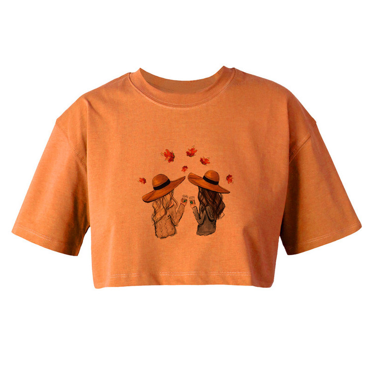کراپ تی‌شرت آستین کوتاه زنانه مدل دختران پاییزی کد Da 610N