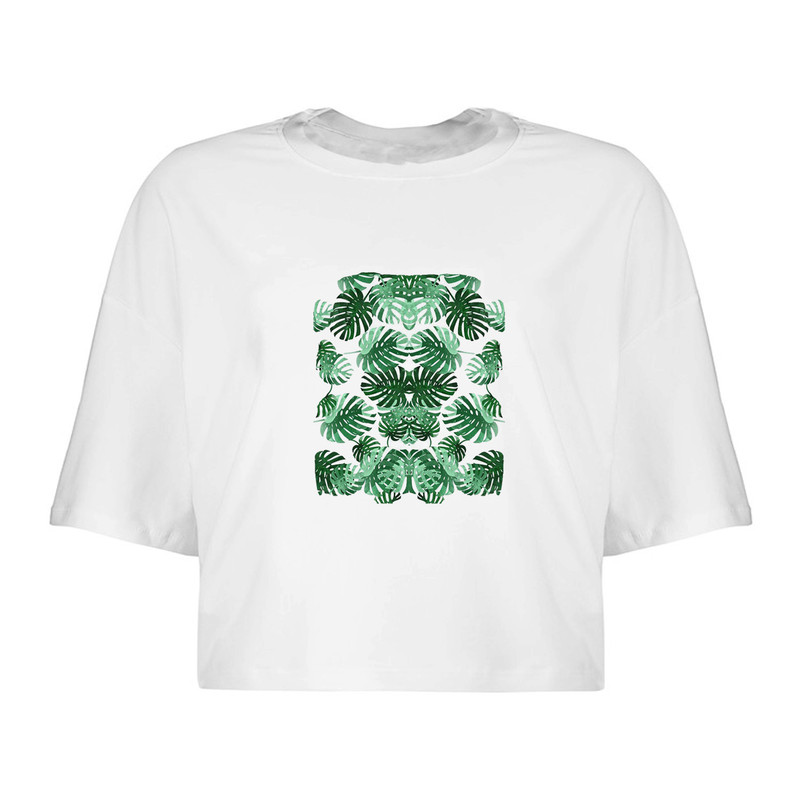 کراپ تی‌شرت آستین کوتاه زنانه مدل برگ ها کد Da 599S