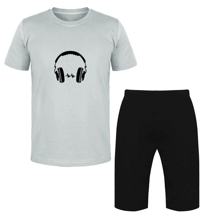 ست تی شرت آستین کوتاه و شلوارک راحتی مردانه مدل موسیقی کد Da 456T