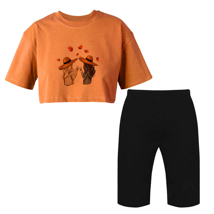 ست نیم تنه و شلوارک راحتی زنانه مدل دختران پاییزی کد Da 610N