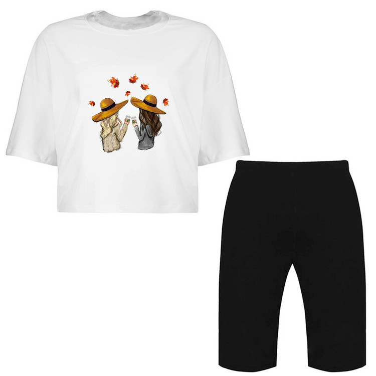 ست نیم تنه و شلوارک راحتی زنانه مدل دختران پاییزی کد Da 610S