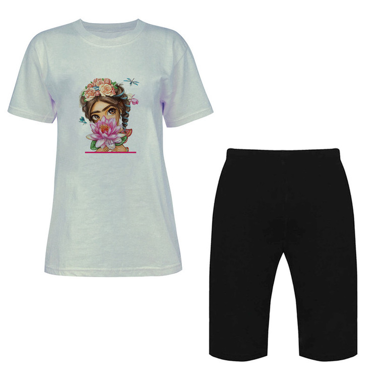 ست تی شرت آستین کوتاه و شلوارک زنانه مدل دختر کد Da 588T